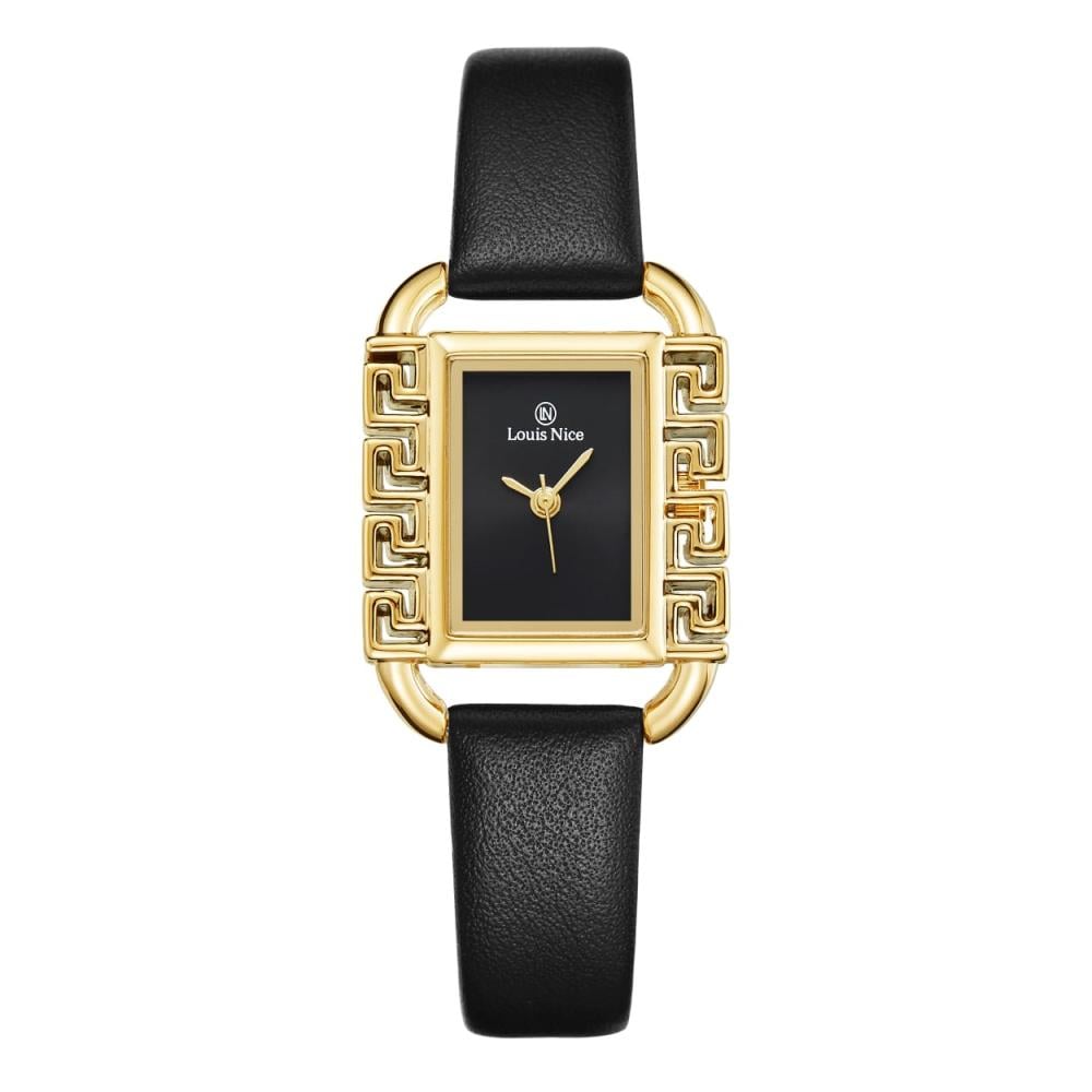 ساعة نسائية أنيقة بتصميم مستطيل مستوحى من لمسات فرزاتشي الفاخرة، تأتي بسير جلد فاخر يضفي لمسة من الرقي، وإطار أنيق يبرز جمال المعصم. تجمع بين الأسلوب الكلاسيكي والفخامة العصرية، وتأتي بتغليف جميل يجعلها خيارًا مثاليًا لتقديمها كهدية راقية.