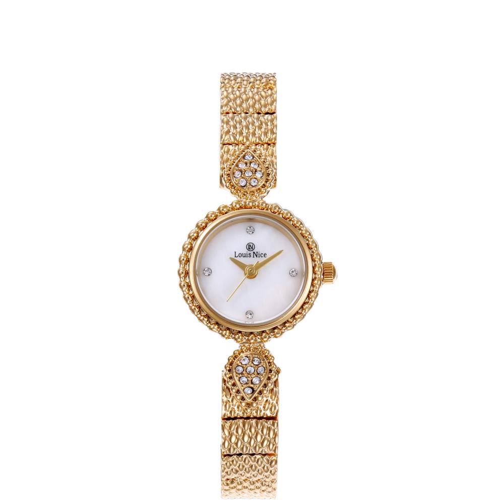 ساعة نسائية انيقة باللون الذهبي ميناء ابيضتتميز الساعة بسير مصنوع من الاستيلمع اطار انيق وملف يناسب جمال يدكنهديك طلبك بتغيلف مميز وانيق مناسب لتقديمة كهديةنضمن لك طلبك لمدة عامين يشمل الماء والمكينة والبطاريةلويس نايس عالم من الاناقة