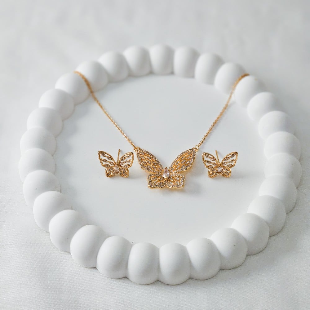 - يتميز بتصميمها المميز بحلية بشكل فراشه تتزين بفصوص الزركون اللامعه