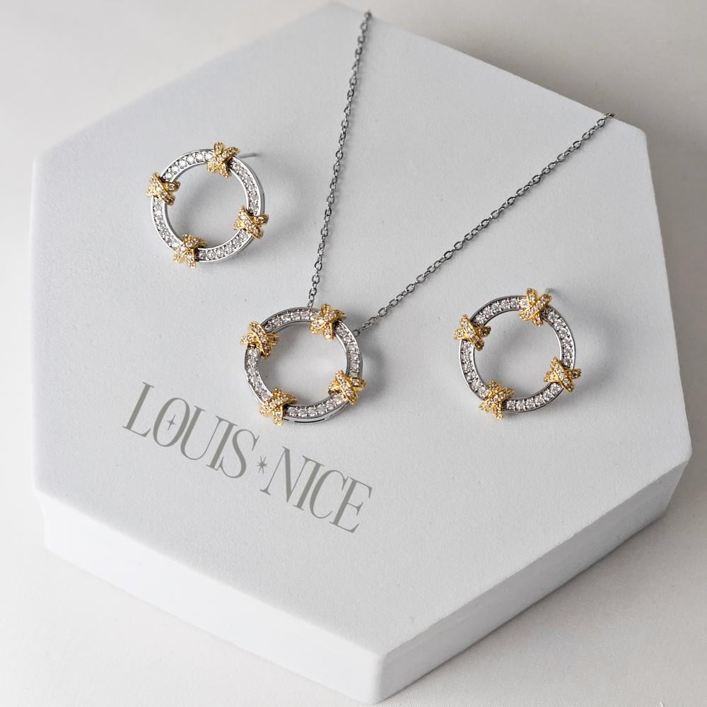 سلسال زركون مع الحلق باللون الفضي مع الذهبي