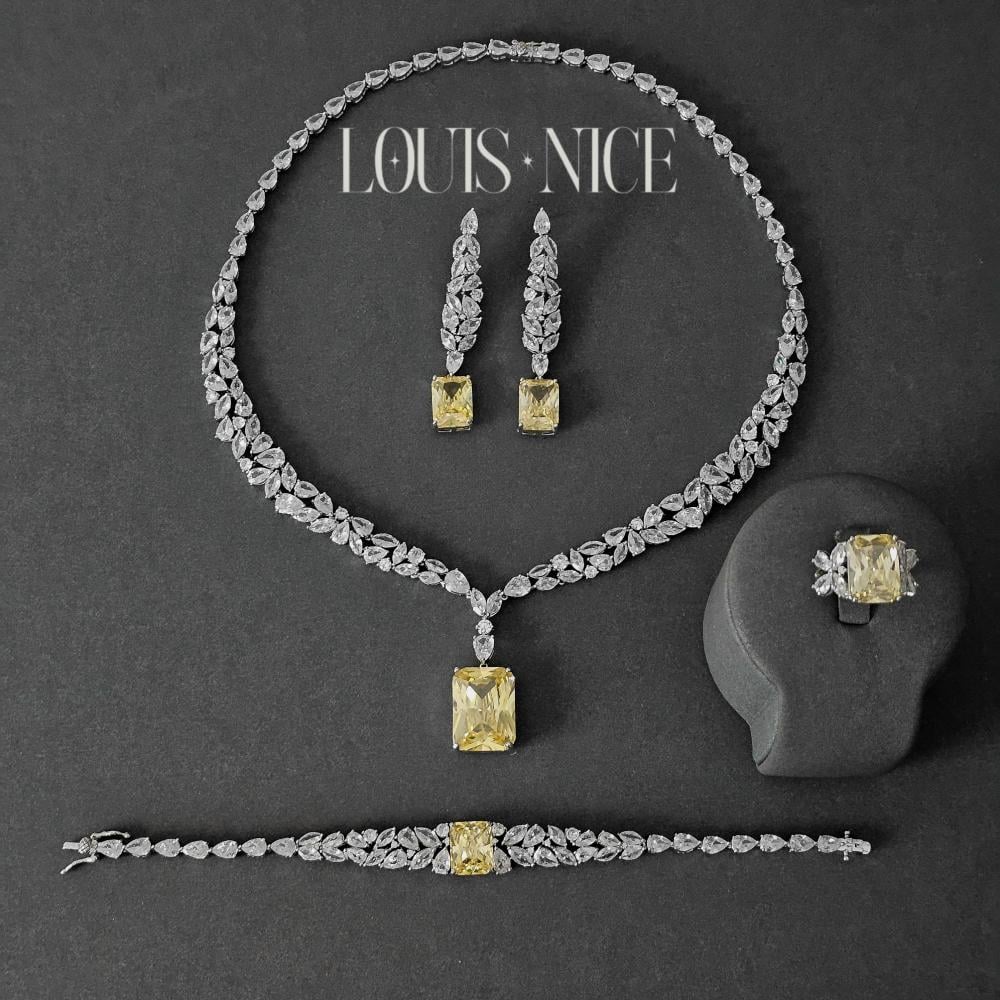 طقم زركون باللون الفضي مع الاصفر بدقة الألماس