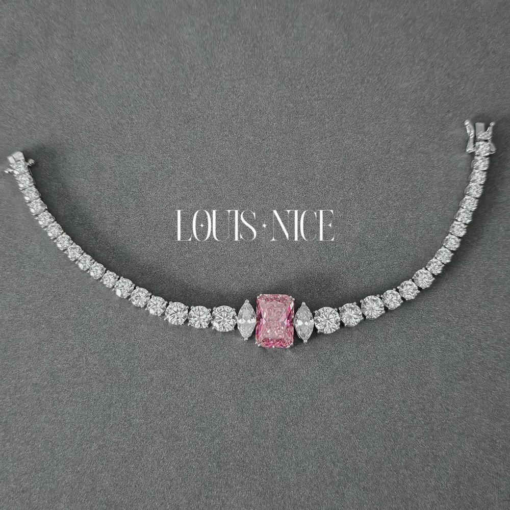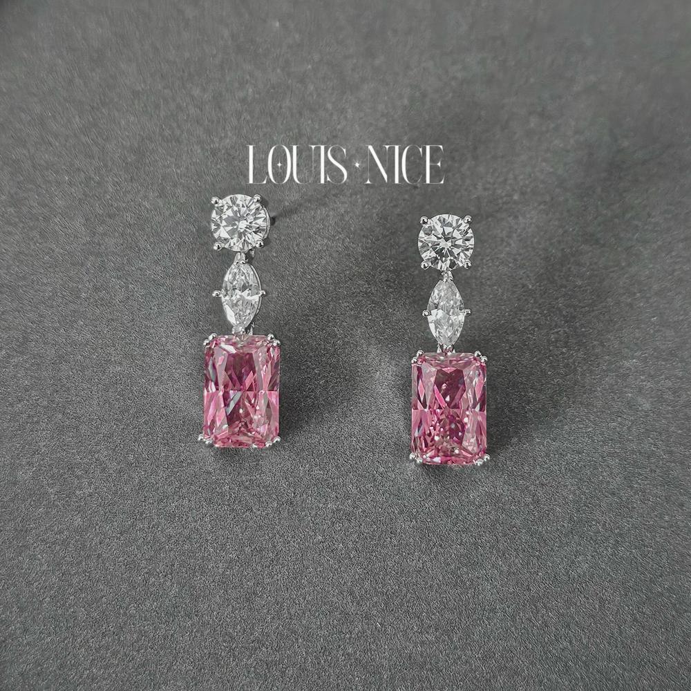 طقم زركون باللون الفضي والوردي بدقة الألماس