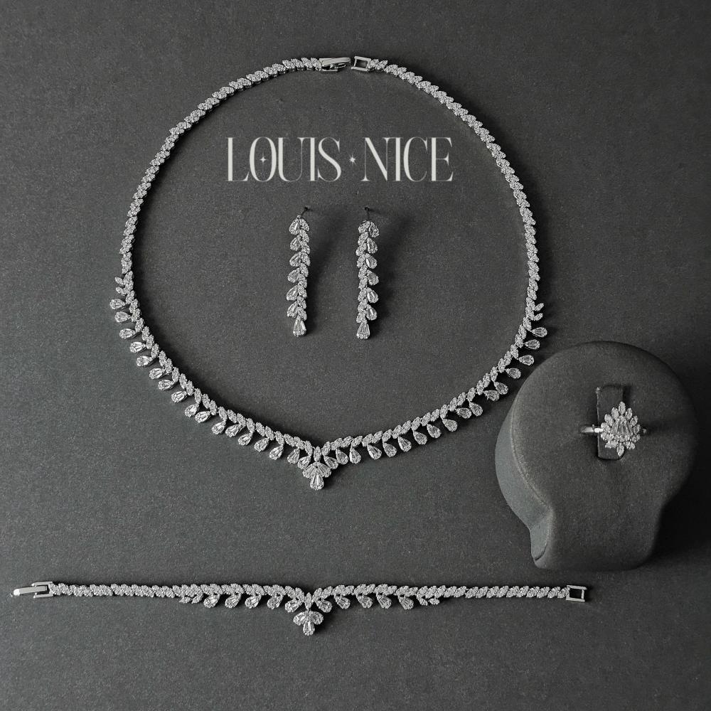 طقم زركون فضي بدقة الألماس
