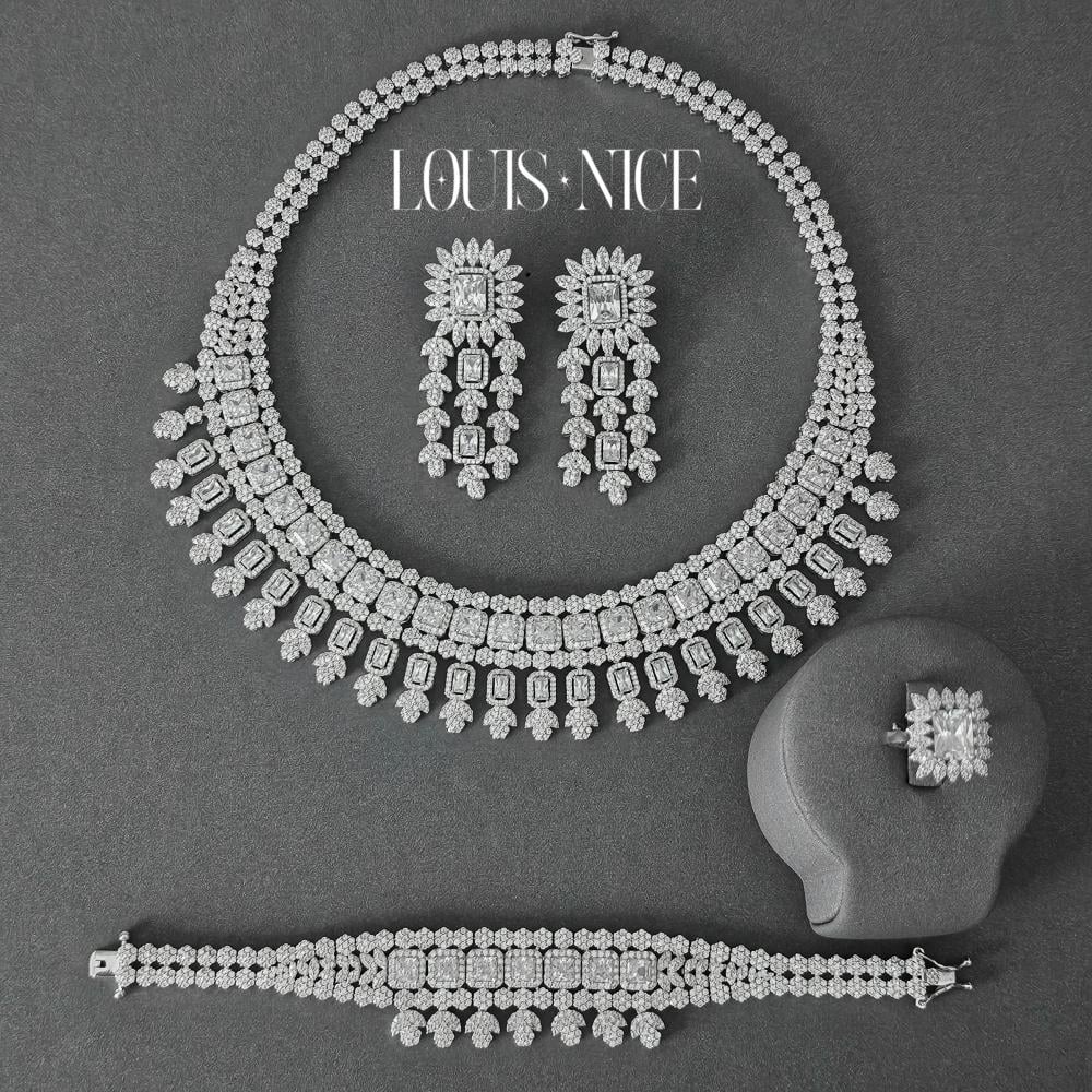 طقم زركون فضي بدقة الألماس