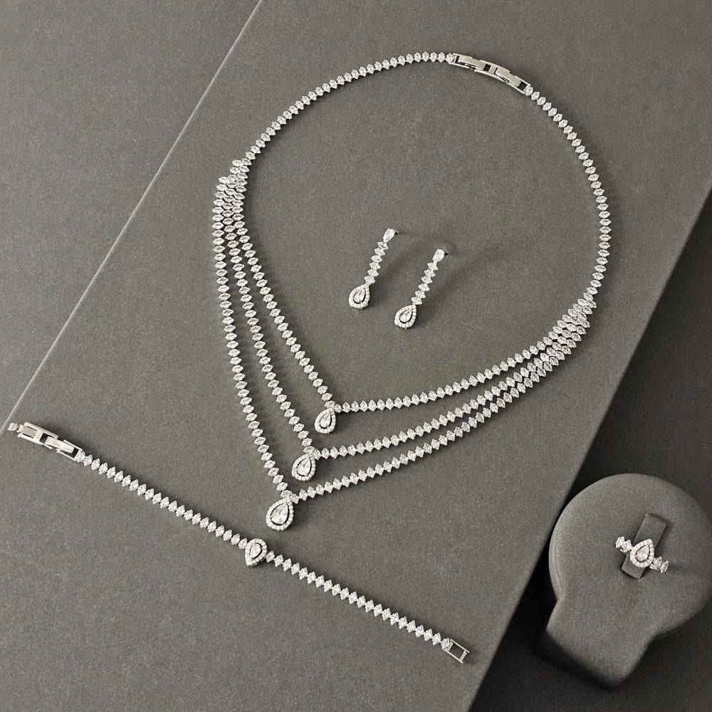 طقم زركون فضي