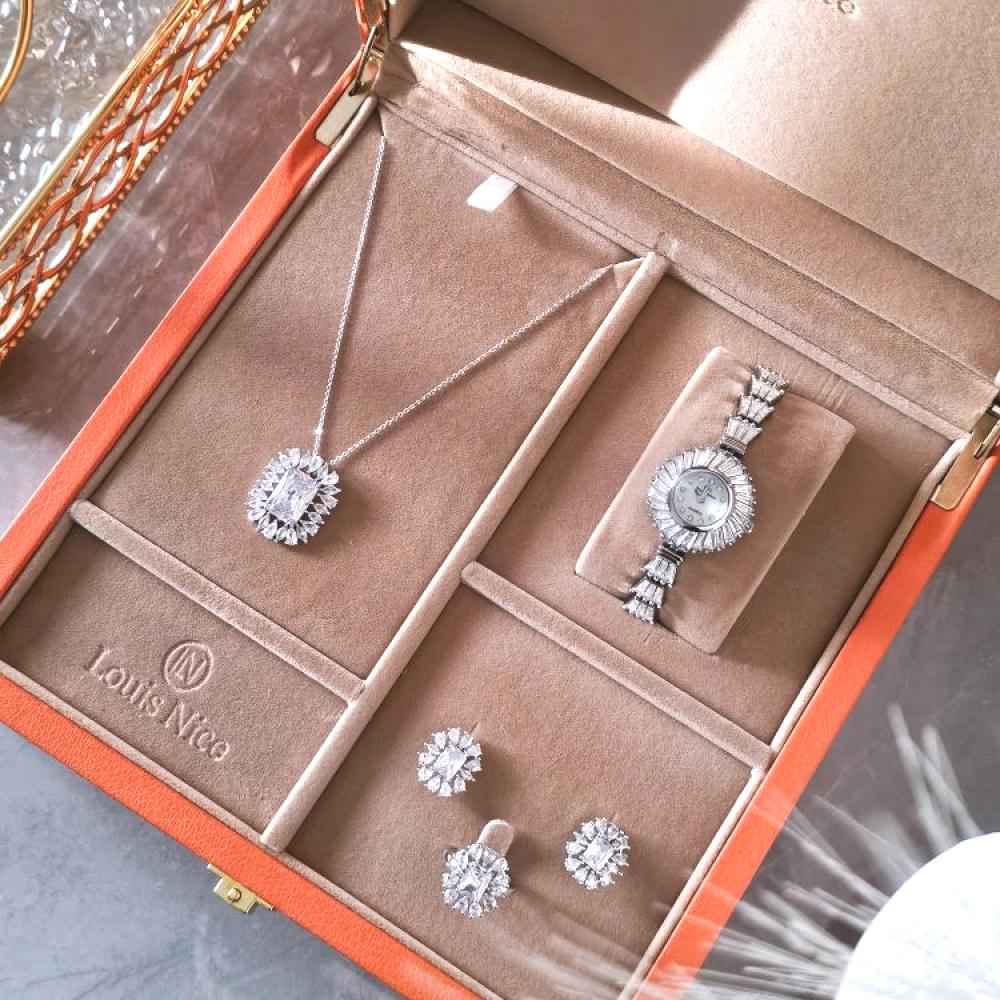 - طقم نسائي أنيق يتضمن ساعة وحلق وسلسال، مصمم ليضيف لمسة من الرقي والأنوثة إلى إطلالتك.